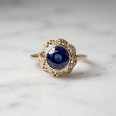 The blue sapphire and diamond ring