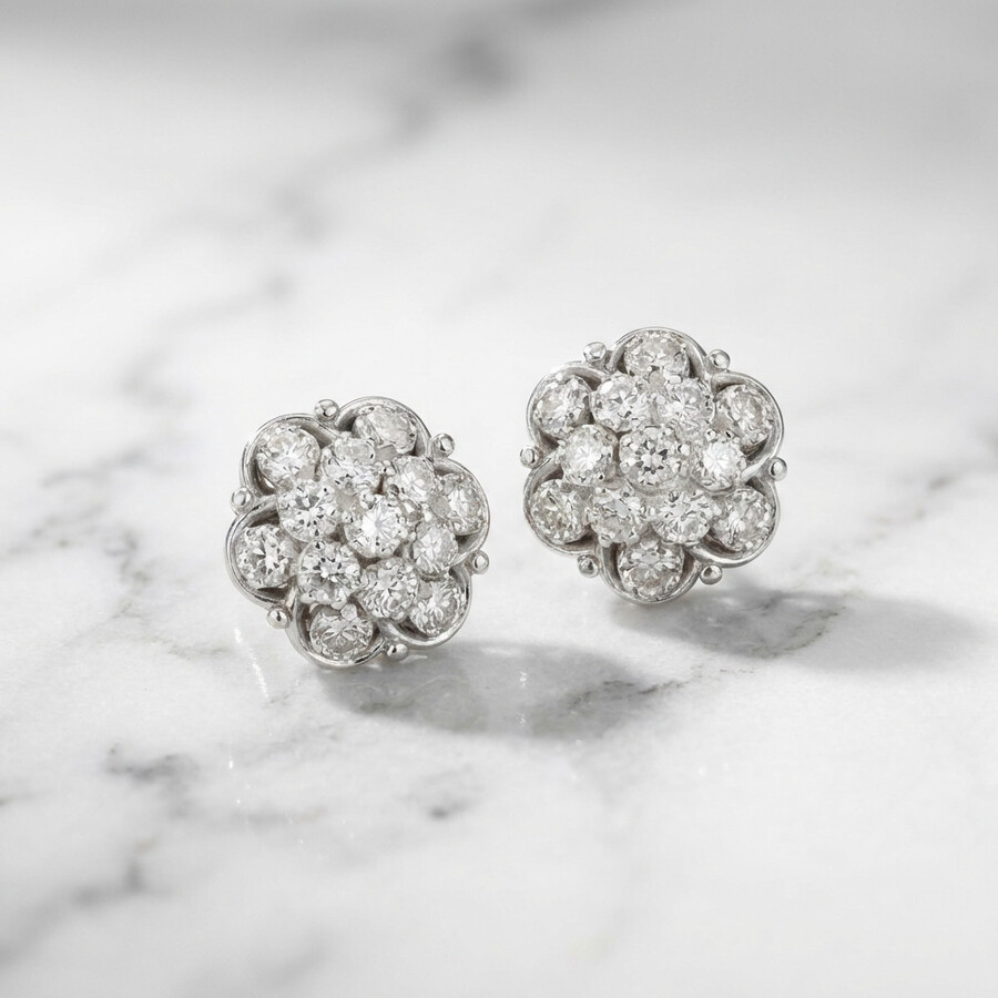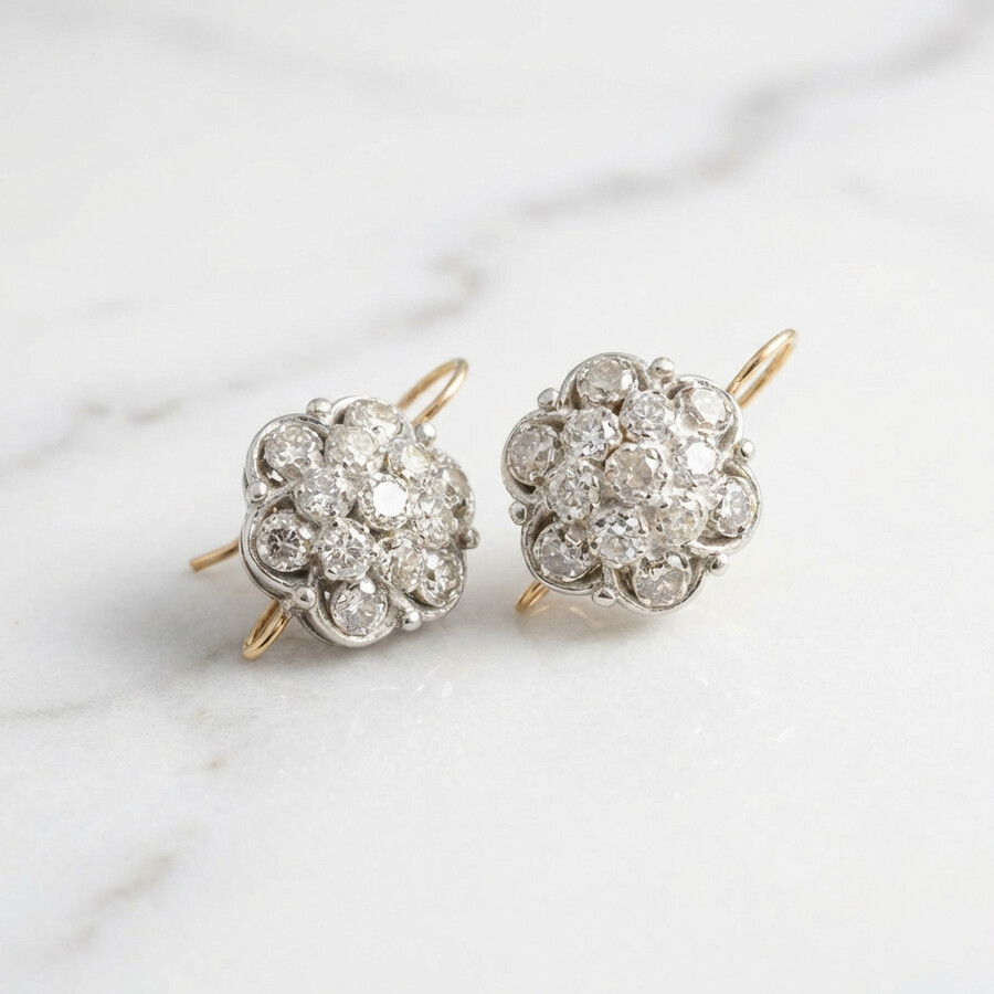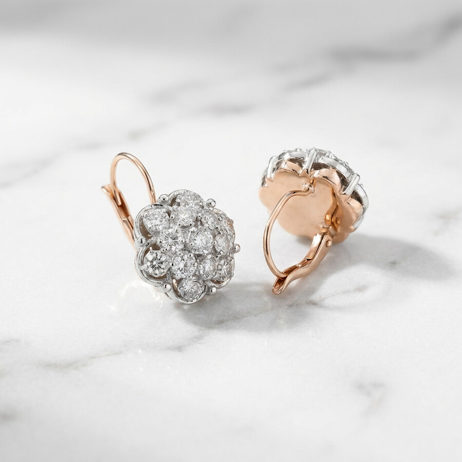 Earrings in a vintage design, diamond flowers combined with luxurious rose gold, fully set with sparkling natural diamonds.