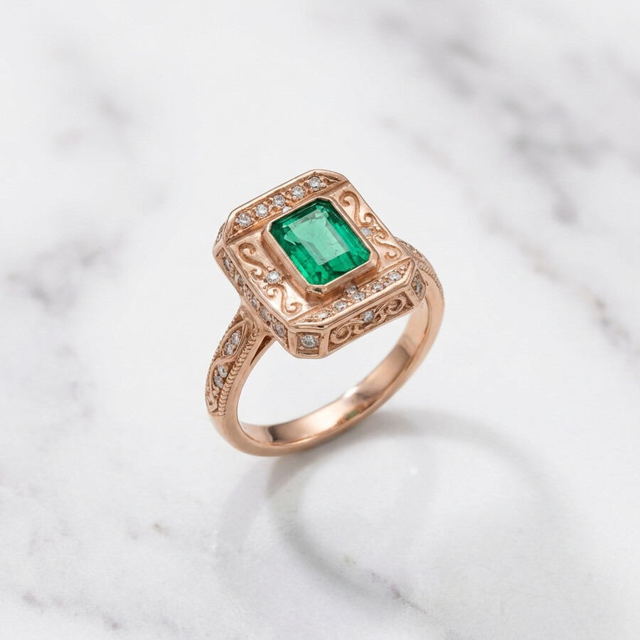 The rose gold and rectangular emerald engravings
