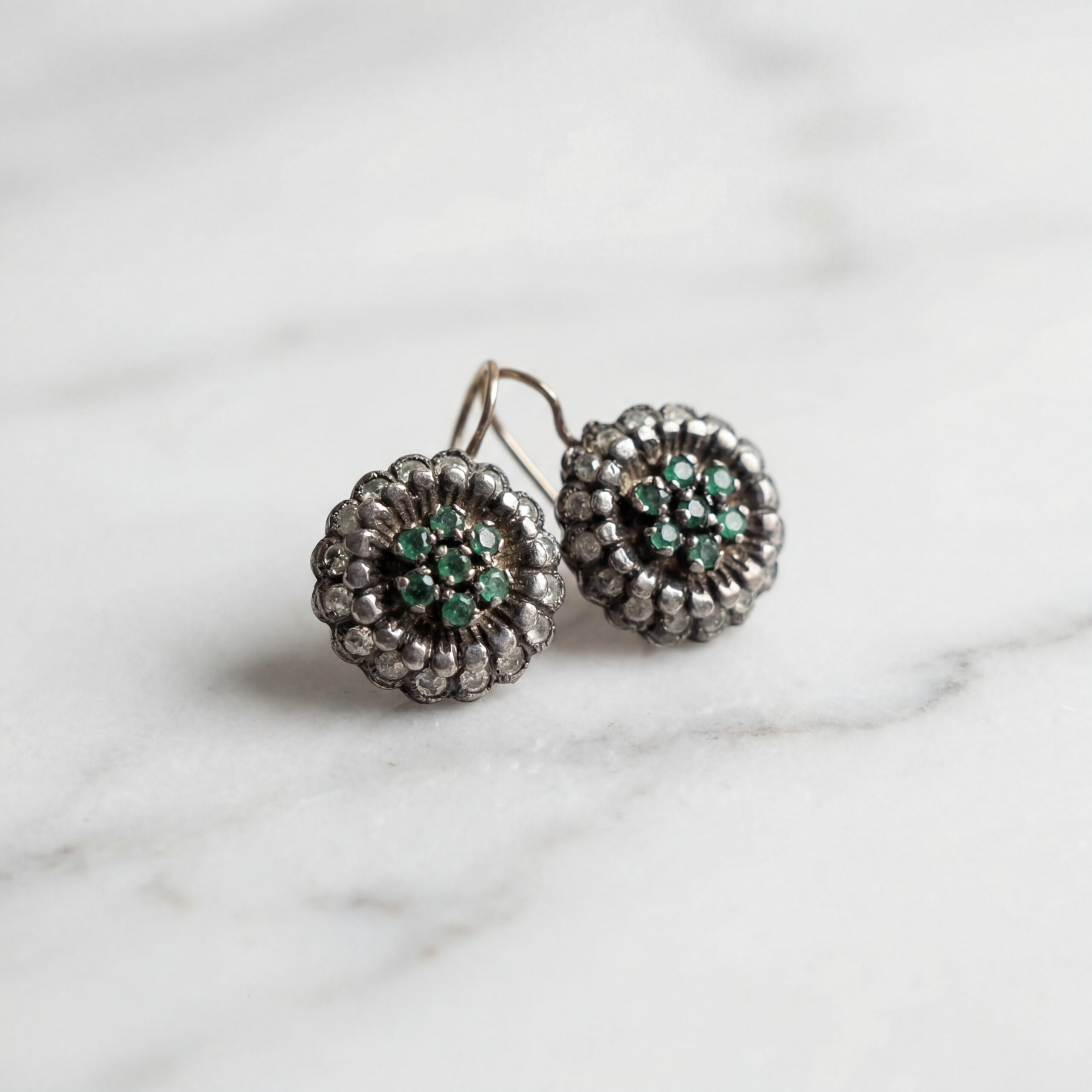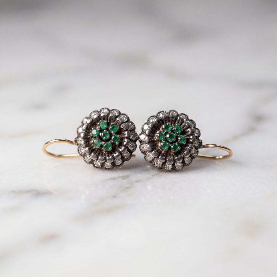 Imperial Emerald & Diamond Artisan Vintage Earrings