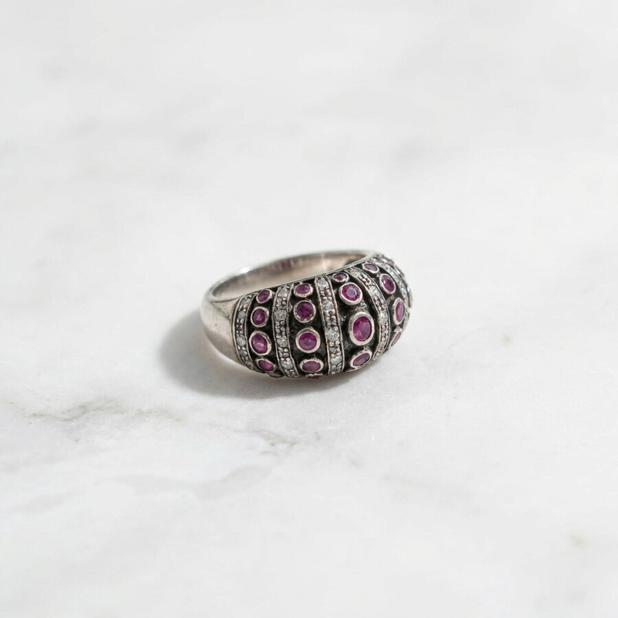 A vintage design ring in a work of art, a special combination that has been blackened to an antique look, combined with rose gold in an artistic handmade technique from ancient times, a combination of luxurious rubies and diamonds in special ball cups.