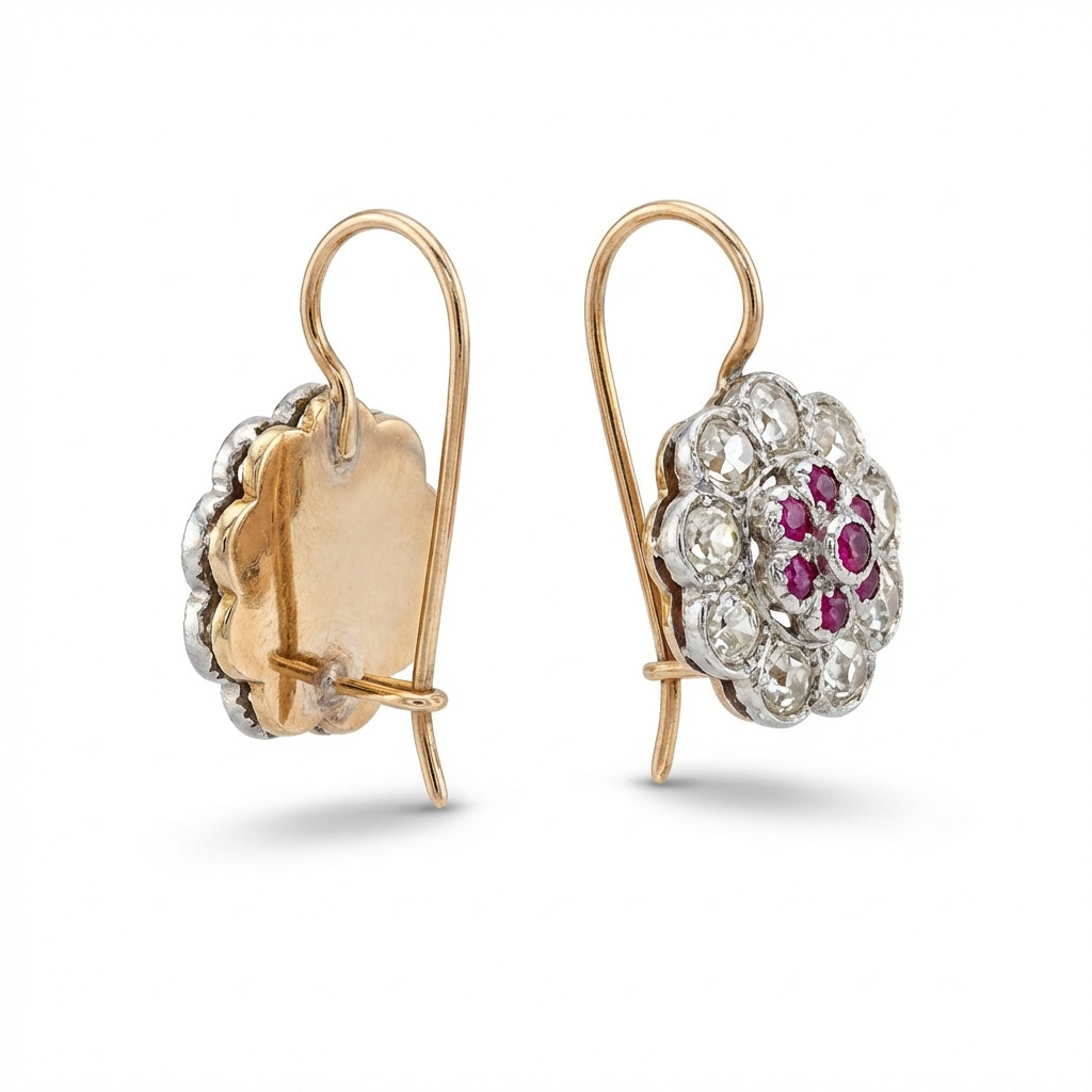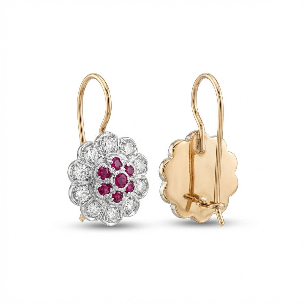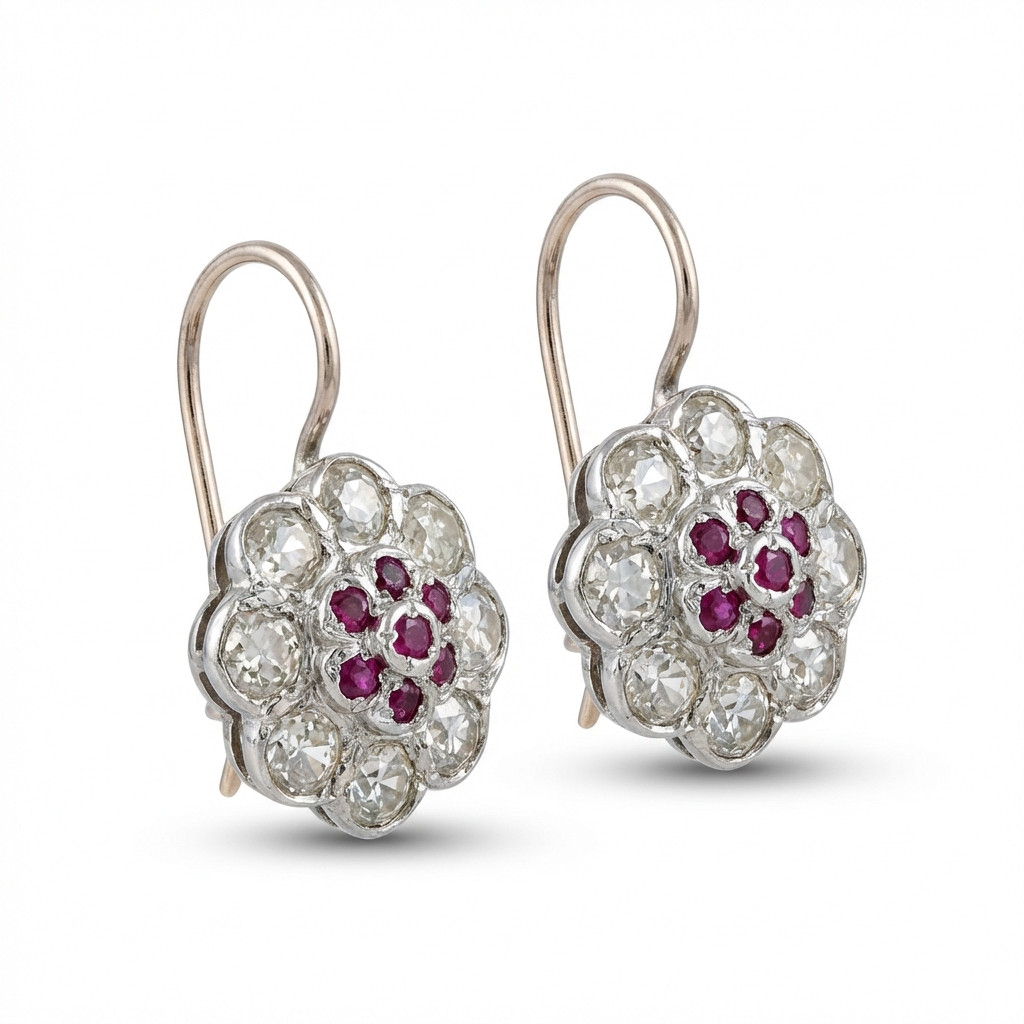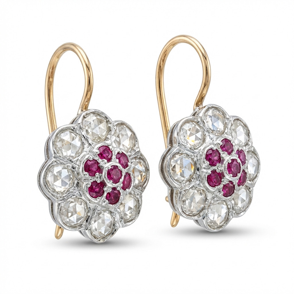 A necklace in the shape of a flower, spectacular and uniquely beautiful, a combination of rubies and natural diamonds around, silver with a combination of pink gold, luxurious handmade, a luxurious design with great presence, suitable for an event or a particularly exciting time.