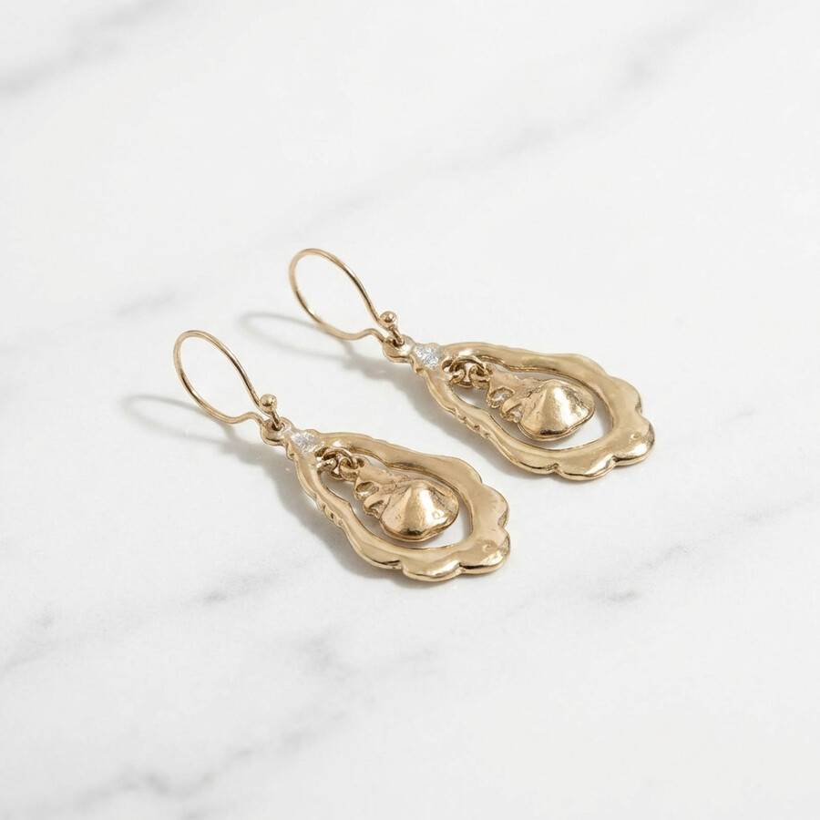 Handmade Edwardian art earrings with antique cut diamonds, one of a kind